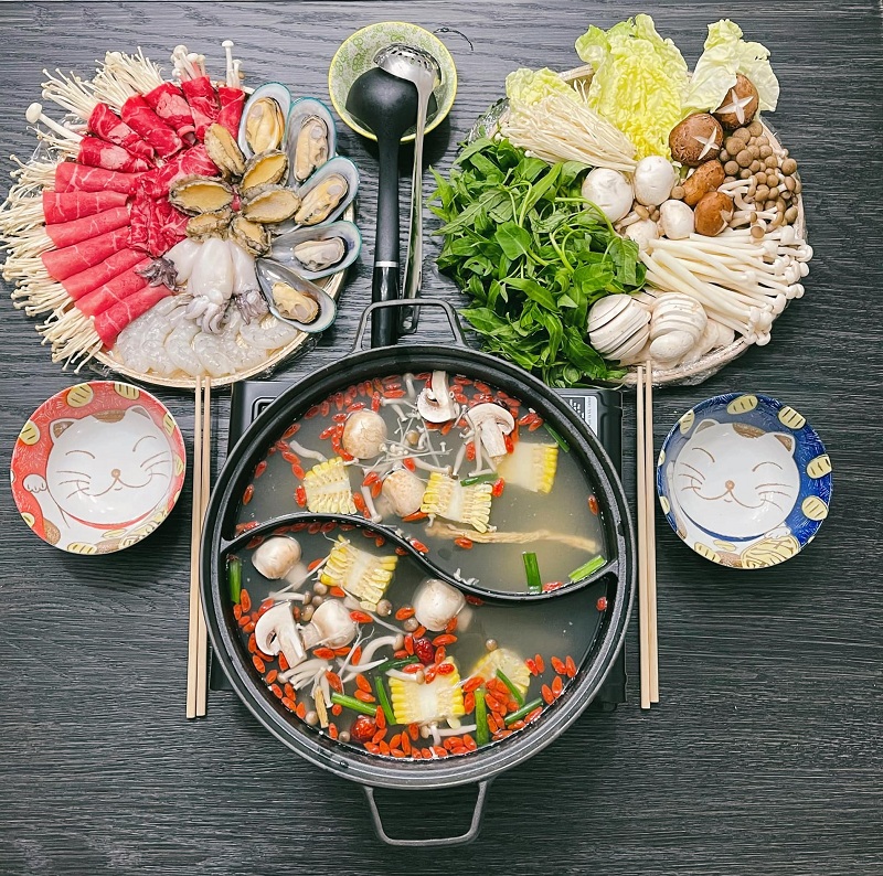 - Nước lẩu trong, ngọt được ninh từ xương gà và đường phèn, các loại rau, nấm, hải sản đều tươi ngon, ngọt tự nhiên tạo nên một nồi lẩu đậm đà, thơm ngon.